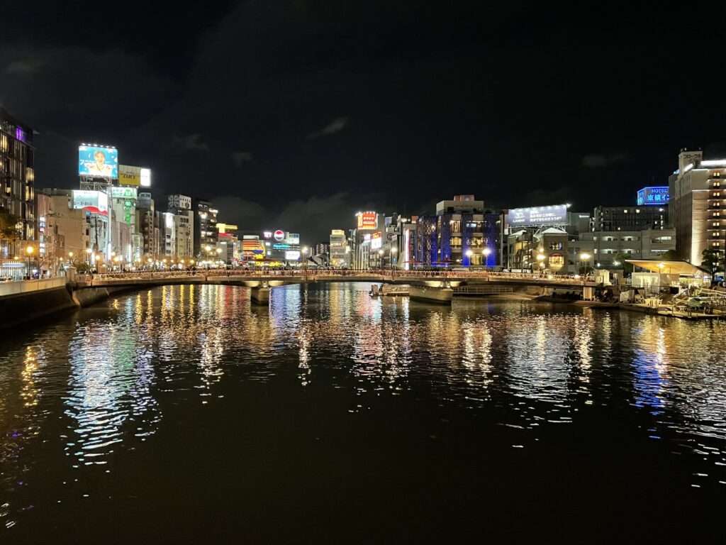 夜の中州。水面が綺麗です。