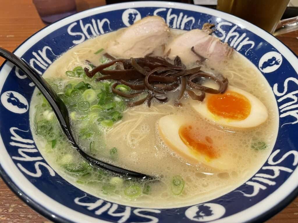 海鮮を堪能して、シメに豚骨ラーメンをいただきました。
