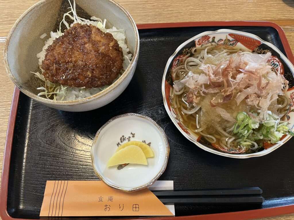 勝山のおり田でおろし蕎麦ソースカツ丼セット。